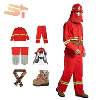 Feuerfestes Anzug-Set aus reiner Baumwolle für die Brand bekämpfung Flamm hemmende Feuerlösch kleidung Feuers tiefel, feuerfestes sechsteiliges Set